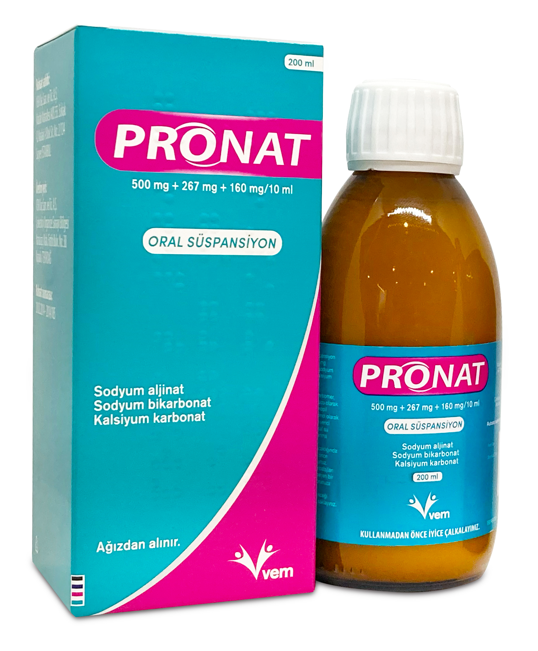 PRONAT 500 mg+267 mg+160 mg/10 ml oral süspansiyon